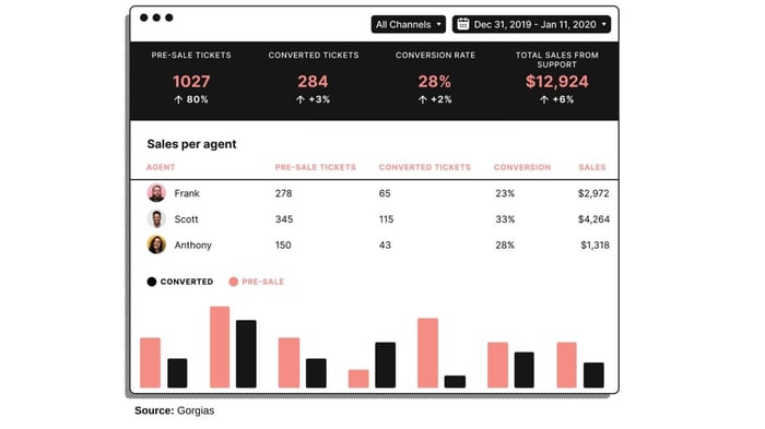 Tracking sales info over text messages, social media interactions, and live chat conversations to unlock more sales opportunities and new leads. In effect, you empower and turn your support agents into salespeople.