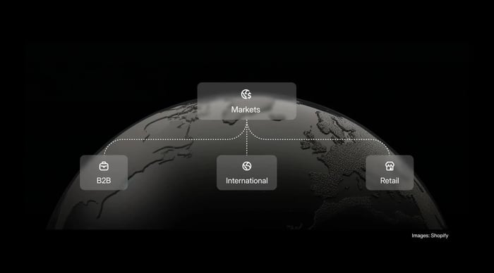 Markets give you a complete overview of your operations, showing all the markets you're in, how each one is set up, and how they all work together. In the next few months, if you're already selling cross-border, B2B, or retail with Shopify, you'll see your existing markets in the new Markets interface.