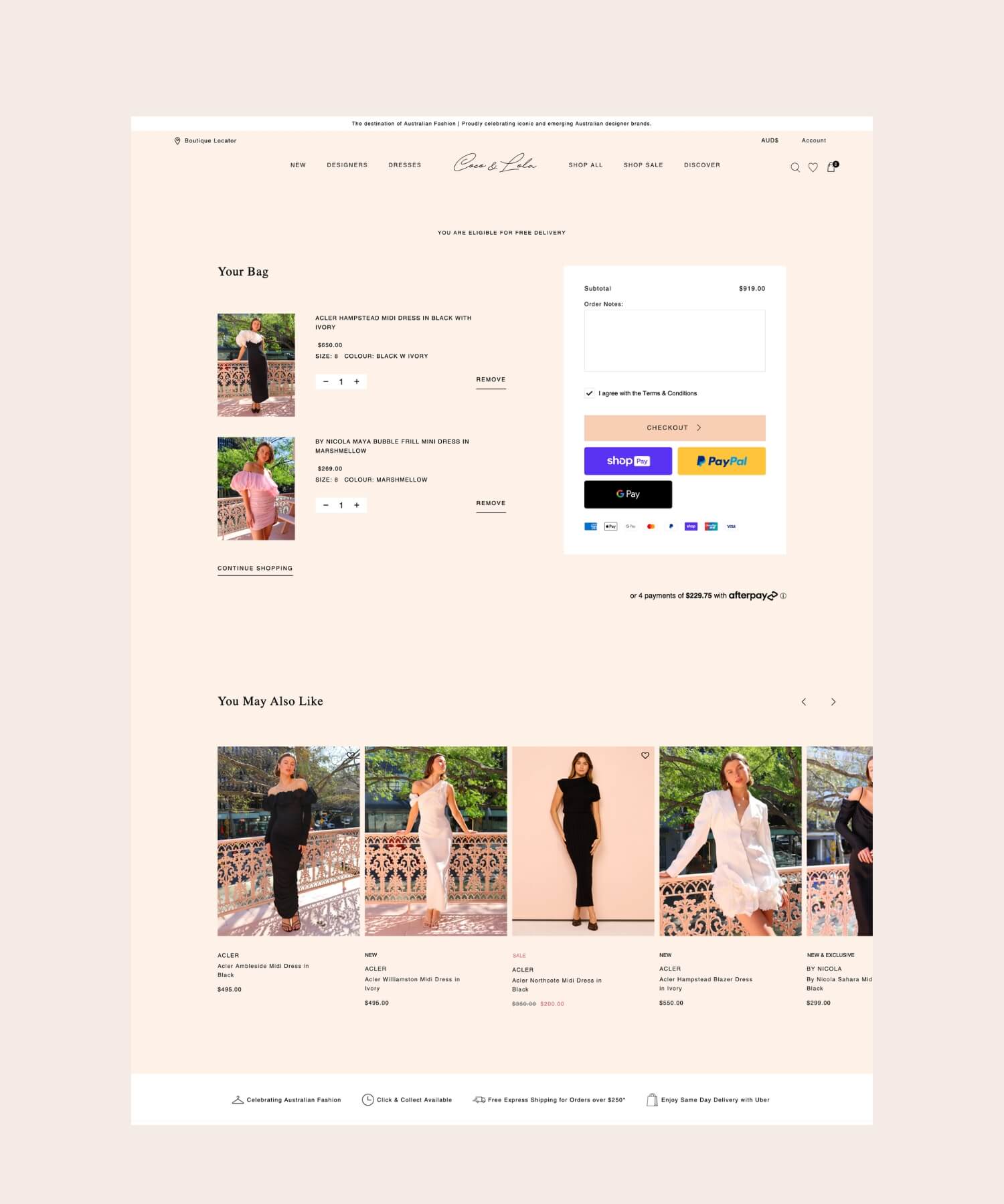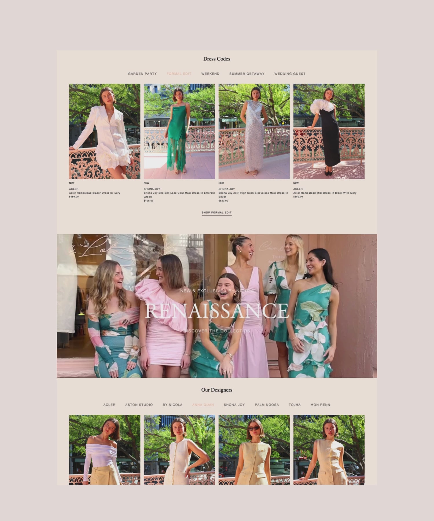 Coco & Lola launched in 2010 and has become the go-to destination for its curated collections of Australian fashion designers: Bec & Bridge, SIR, Shona Joy, LIDEE, Alemais, Acler, Camilla and Marc, By Nicola, One Fell Swoop, Significant Other, and Viktoria & Woods.