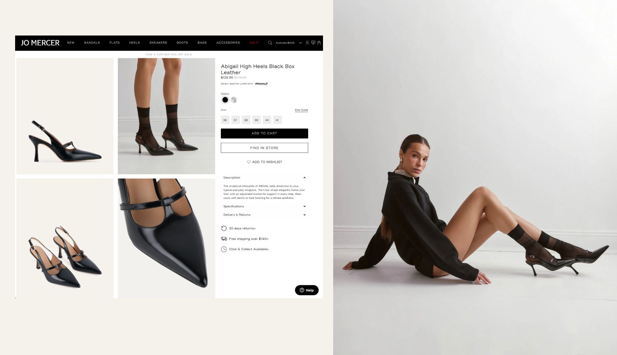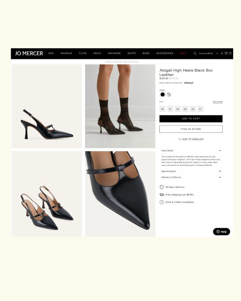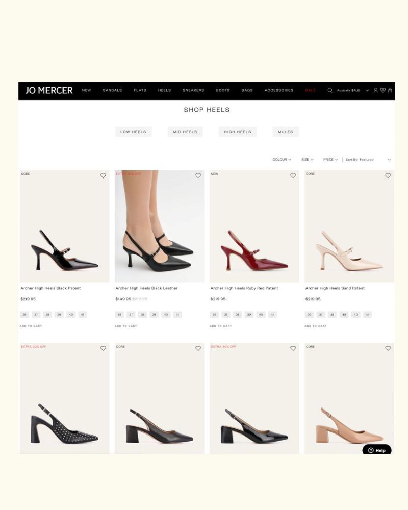 Our team redesigned the store’s product filtering system, grouped similar products, and implemented a custom click & collect feature to streamline the customer journey and simplify purchasing both online and in-store. The enhanced usability and refined design led to a significant uplift in sales and a seamless, feature-rich Shopify Plus experience that supports Jo Mercer’s continued growth across Australia.