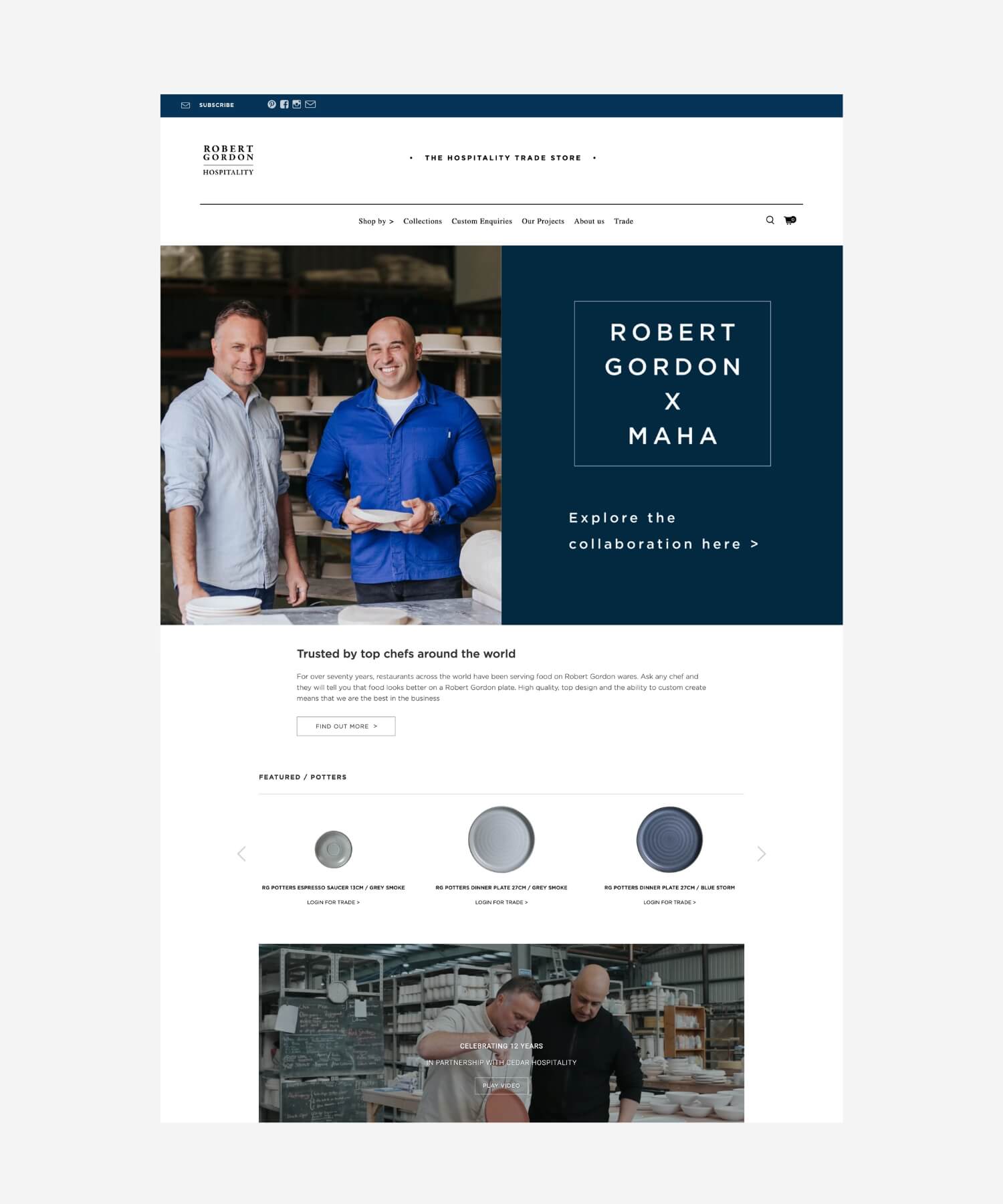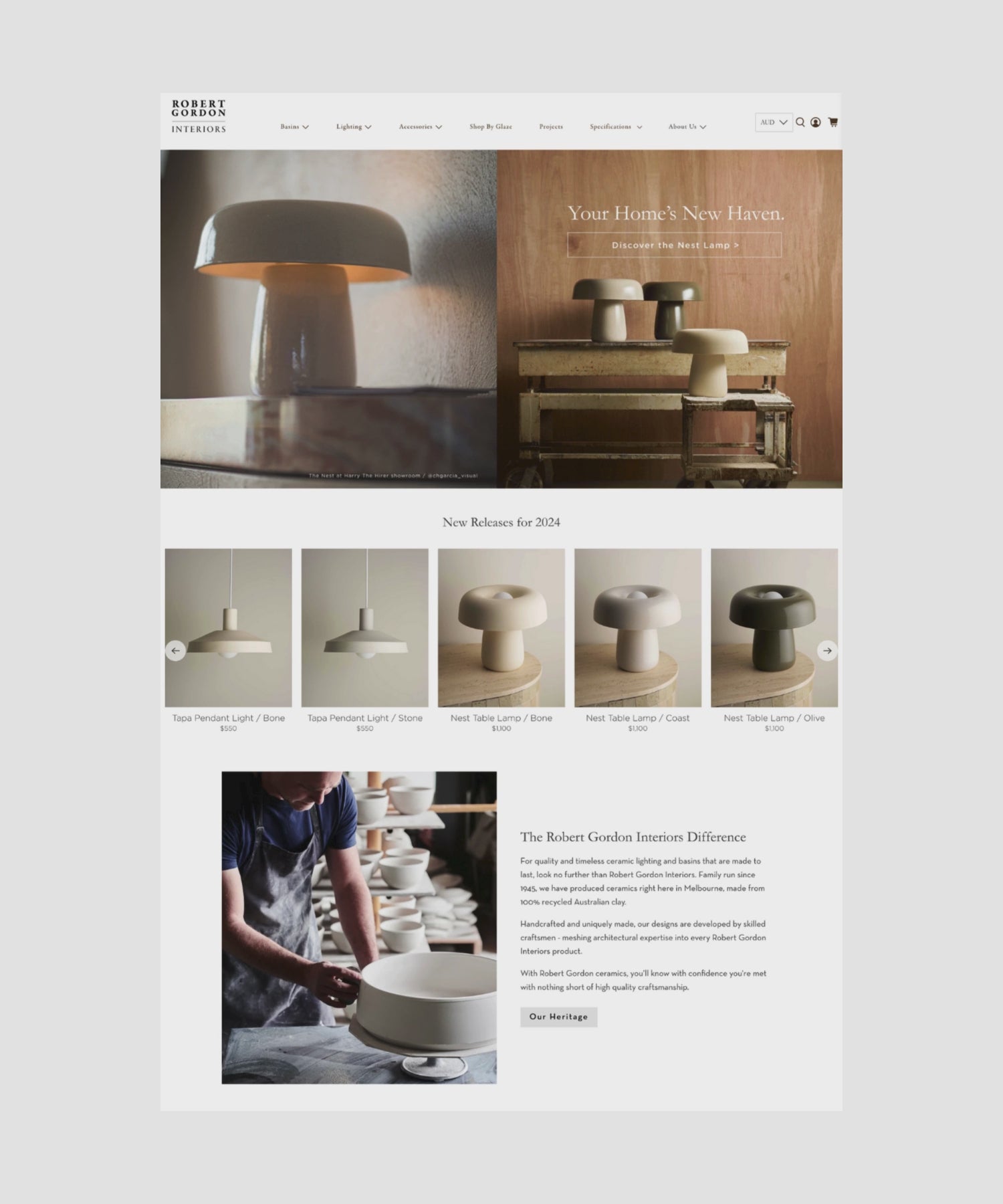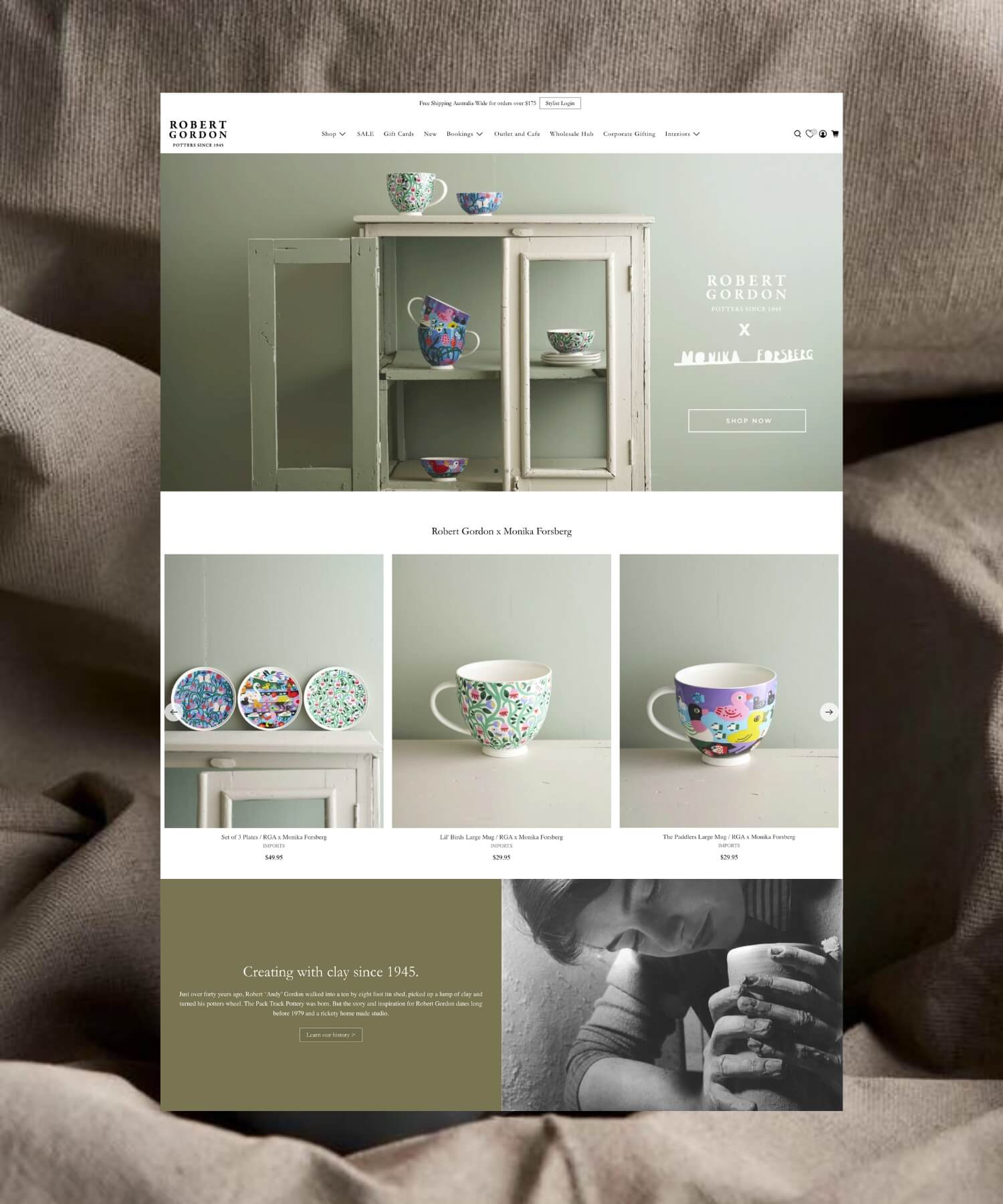 As one of Australia’s last remaining large-scale potteries, Robert Gordon has been crafting high-fired stoneware for over 75 years. We've collaborated with the brand for over five years to support their growth across multiple online stores — Pottery, Interiors and Hospitality.